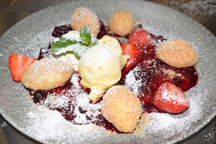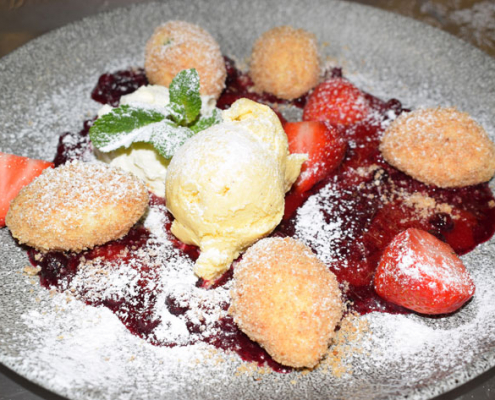 Die Küche bietet eine große Auswahl an heimischen Spezialitäten. Dabei wird großer Wert auf die Verwendung regionaler und saisonaler Produkte gelegt. Besonderes Highlight ist der Spanferkelgrill in der Glasvitrine!