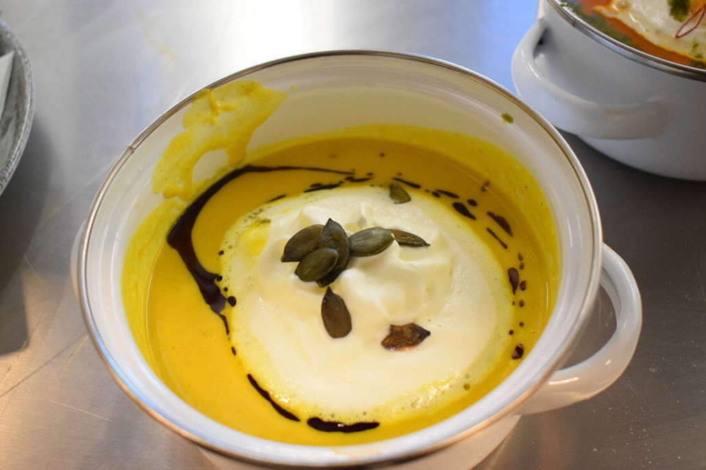 Die Küche bietet eine große Auswahl an heimischen Spezialitäten. Dabei wird großer Wert auf die Verwendung regionaler und saisonaler Produkte gelegt. Besonderes Highlight ist der Spanferkelgrill in der Glasvitrine!